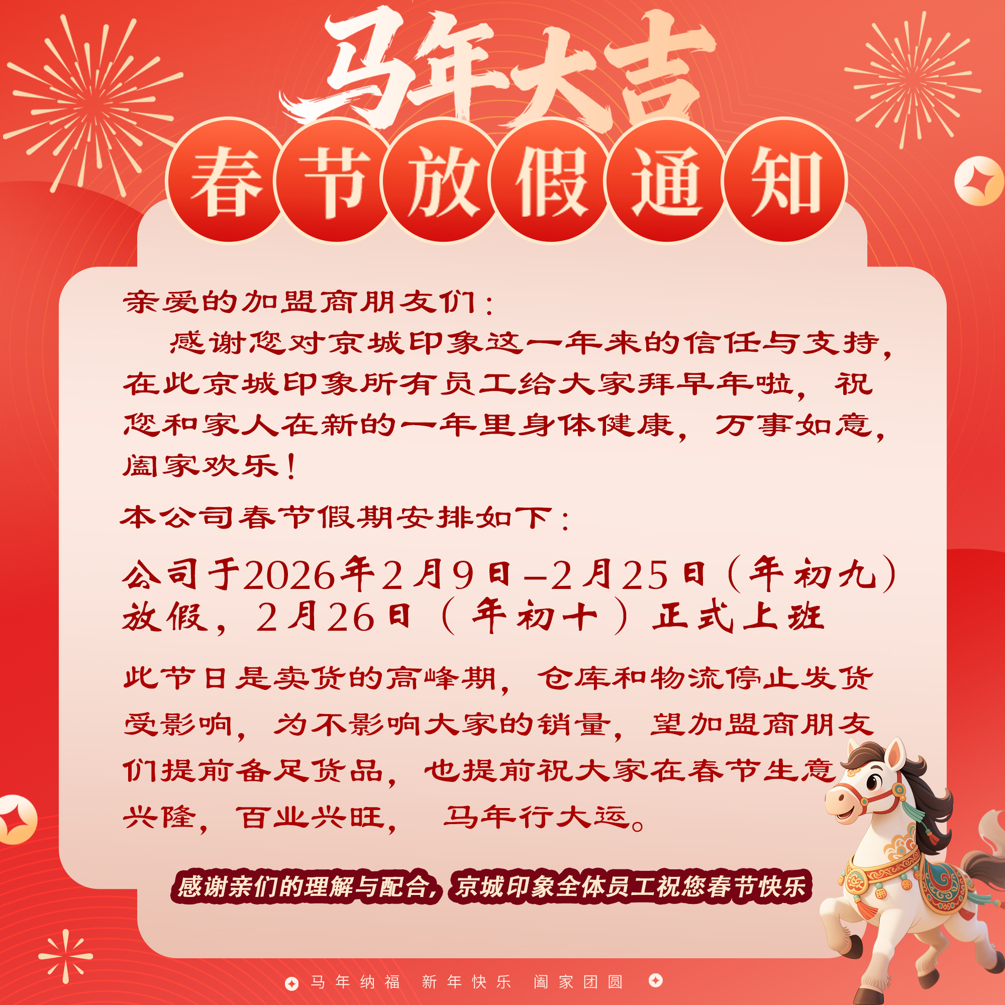 京城印象 春节放假通知